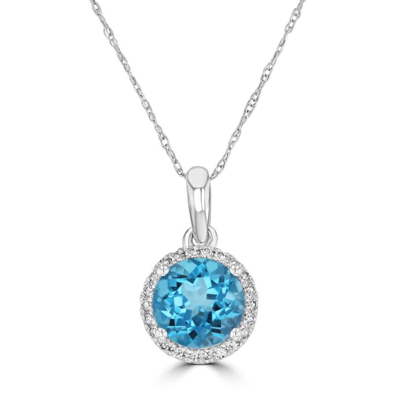 7MM ROUND BLUE TOPAZ HALO PENDANT (CHAIN NOT INCLUDED)