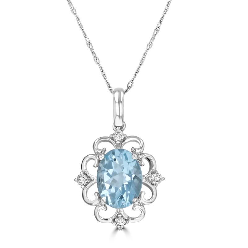 Item #2043488W $7606X8 OVAL AQUAMARINE WITH FOUR ROUND DIAMONDS PENDANT (CHAIN NOT INCLUDED)